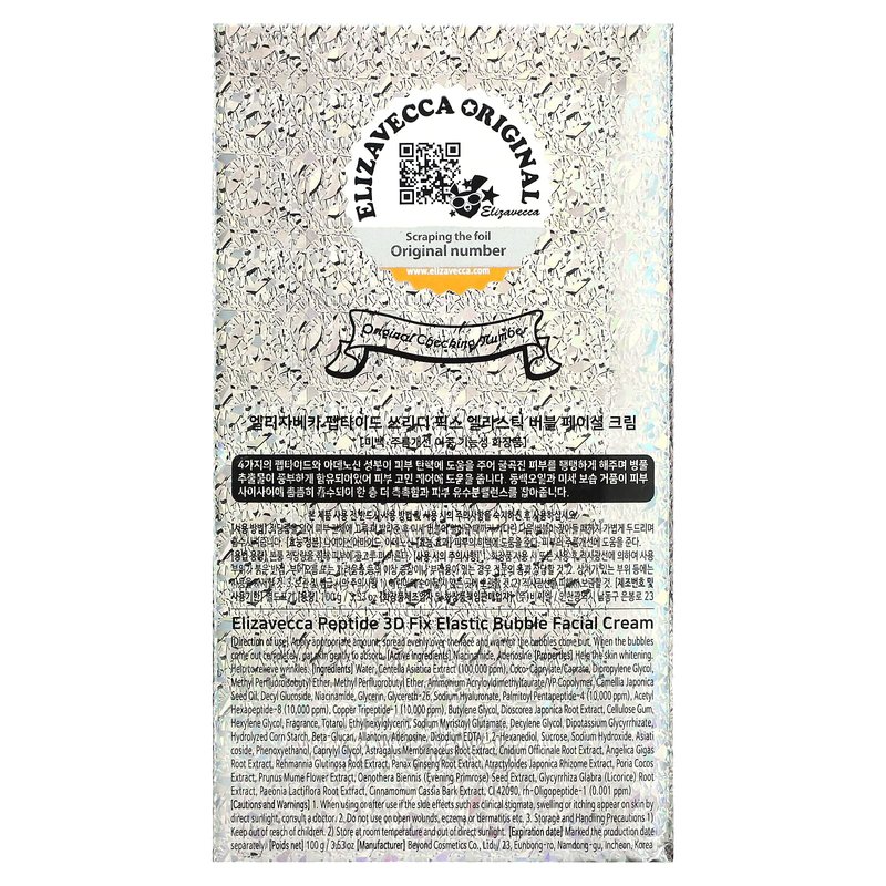 Elizavecca 3D Peptide Elastic Water Bubble Cream 100ml/3.53oz - Bubble Face Cream | Bubble Skin Care | Hyaluronic Acid Cream | Big size Water Cream