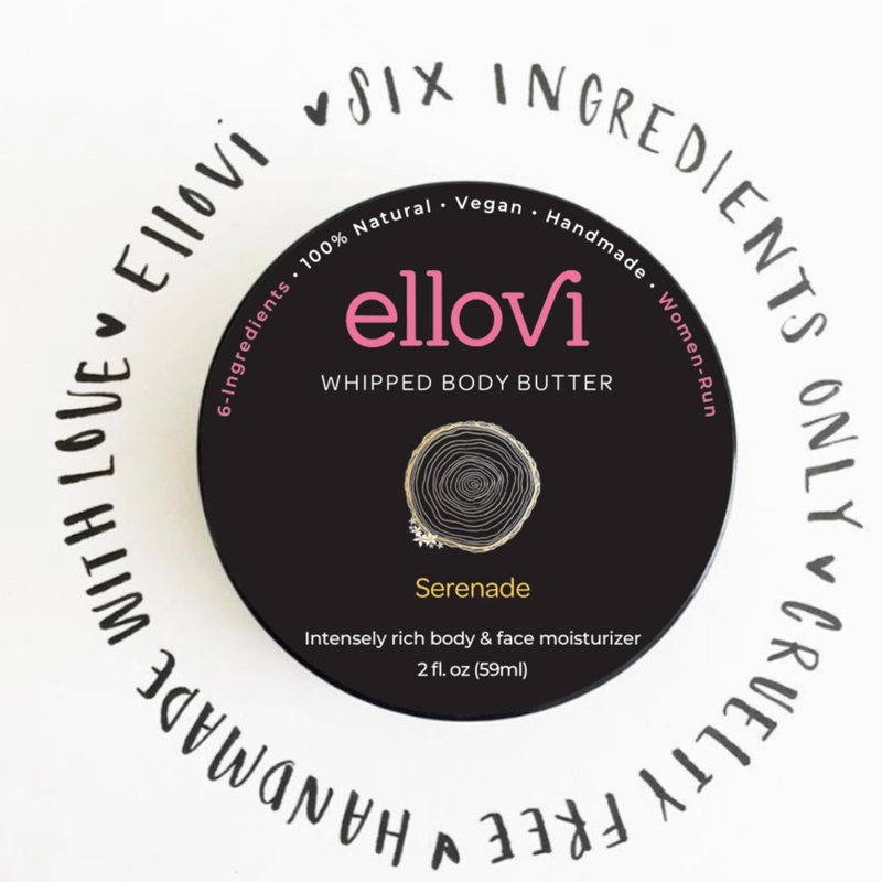 Ellovi All-Natural Luxuriously Whipped Body Butter - Serenade - 100% Nut Free - Made With Just 6 Vegan Ingredients - Ultra-Rich 100% Plant-Based Hydrating Moisturizer For Naturally Healthy Skin