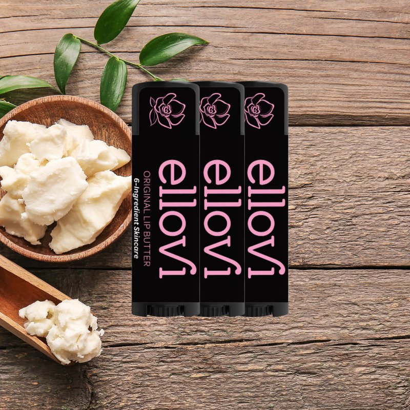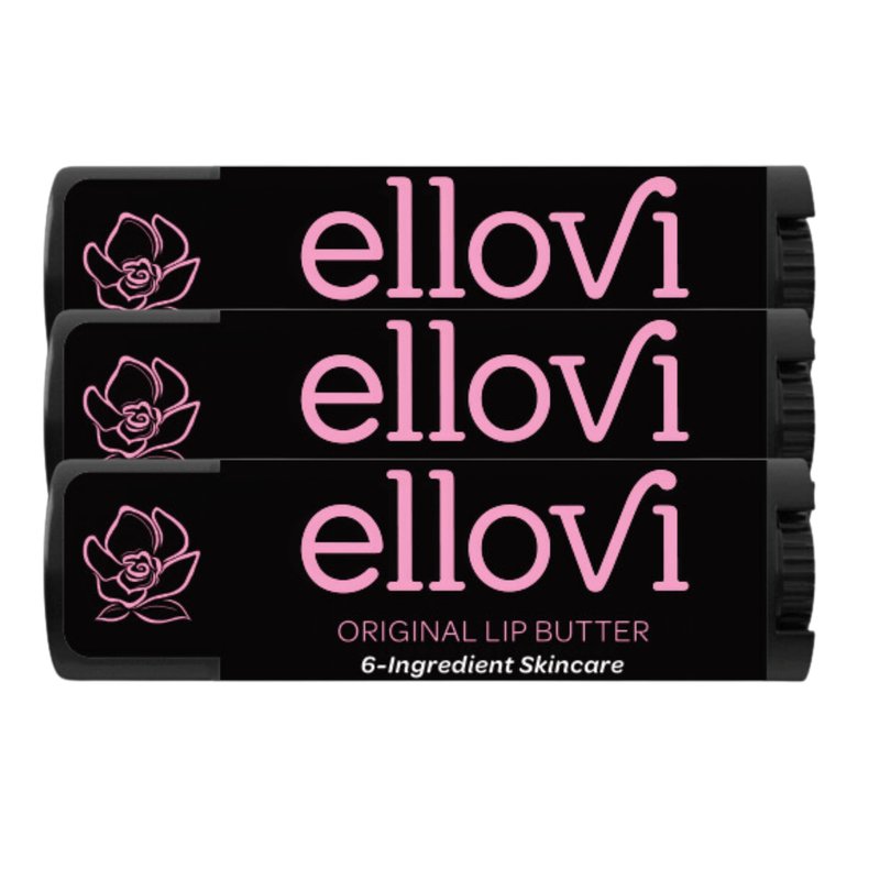 Ellovi Natural Lip Butter Lip Balm - Original - Pure Enough to Eat - Made With Just 6 Vegan Ingredients - Moisturizing Lip Care for All Day Hydration (3-Pack)