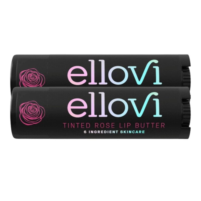 Ellovi Natural Lip Butter Lip Balm - Wild Rose Tinted - Pure Enough to Eat - Made With Just 6 Vegan Ingredients - Tinted Moisturizing Lip Care for All Day Hydration (2-Pack)
