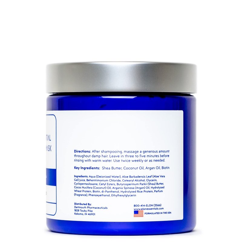 Elon Essentials Deep Conditioning Treatment Mask (8 oz): Leave behind dry and frizzy locks and welcome stronger, healthier, and lustrous hair with the Elon Essentials protein hair mask. This coconut oil hair mask is formulated with rice and wheat proteins, argan oil, coconut oil, silica, and shea butter for hair that provides intense replenishment. Our hydrating argan oil hair mask seals in moisture and helps restore hair softness and luster. This hair treatment for dry damaged hair effectively nurtures and protects hair without adding weight to support natural smoothness and sheen. --- How to Use: After shampooing, massage the hair masque into wet hair concentrating on the ends. Leave it on 3-5 minutes, then rinse. Use the damaged hair treatment mask twice a week instead of conditioner, or as needed. --- Ingredients: Aqua (Deionized Water), Aloe Barbadensis (Aloe Vera Gel) Juice, Behentrimonium Chloride, Cetearyl Alcohol, Glycerin, Cyclopentasiloxane, Cetyl Esters, Butyrospermum Parkii (Shea) Butter, Cocos Nucifera (Coconut) Oil, Argania Spinosa (Argan) Oil, Hydrolyzed Wheat Protein, Biotin, di-Panthenol, Hydrolyzed Rice Protein, Parfum (Fragrance), Phenoxyethanol, Ethylhexylglycerin. --- About Us: Recommended to patients by dermatologists for over 25 years, Elon Essentials is a trusted brand that has provided effective, pharmaceutical-grade hair, skin, and nail products since 1991.