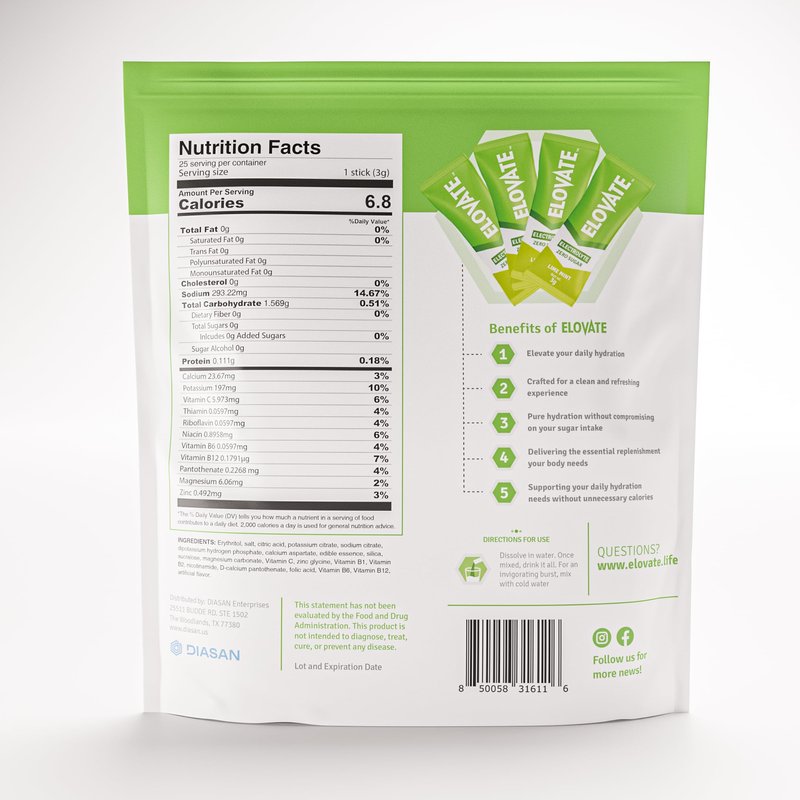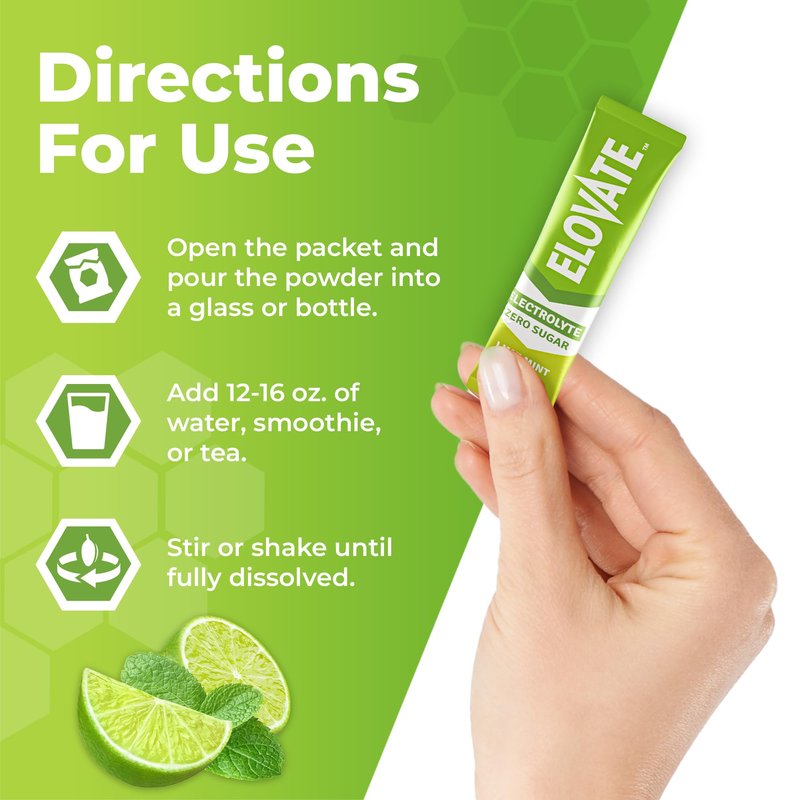 ELOVATE 15 Zero Sugar Electrolyte Drink Mix - Balanced Hydration Mix - Electrolytes Powder - Fine Powder Hydration Packets for Travel, Workout & More - 3g Per Stick (Lime Mint Flavor, Pack of 25)
