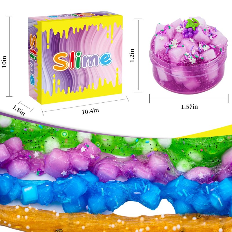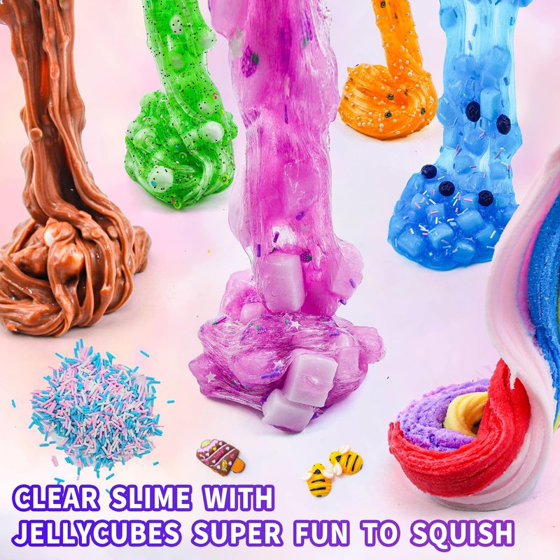 - 【SUPER SOFT &VIBRANT COLORS】This slime pack includes Grapes, honey, blueberries, walnuts, rainbow, chocolate,jelly cube,biscuit and so on awesome add-ins,it is delivers a unique texture that is super soft to touch Whether you want to make crunchy slimejelly cube slime or experiment with different colors, this slime kit has everything you need to create your own unique slime creations.
