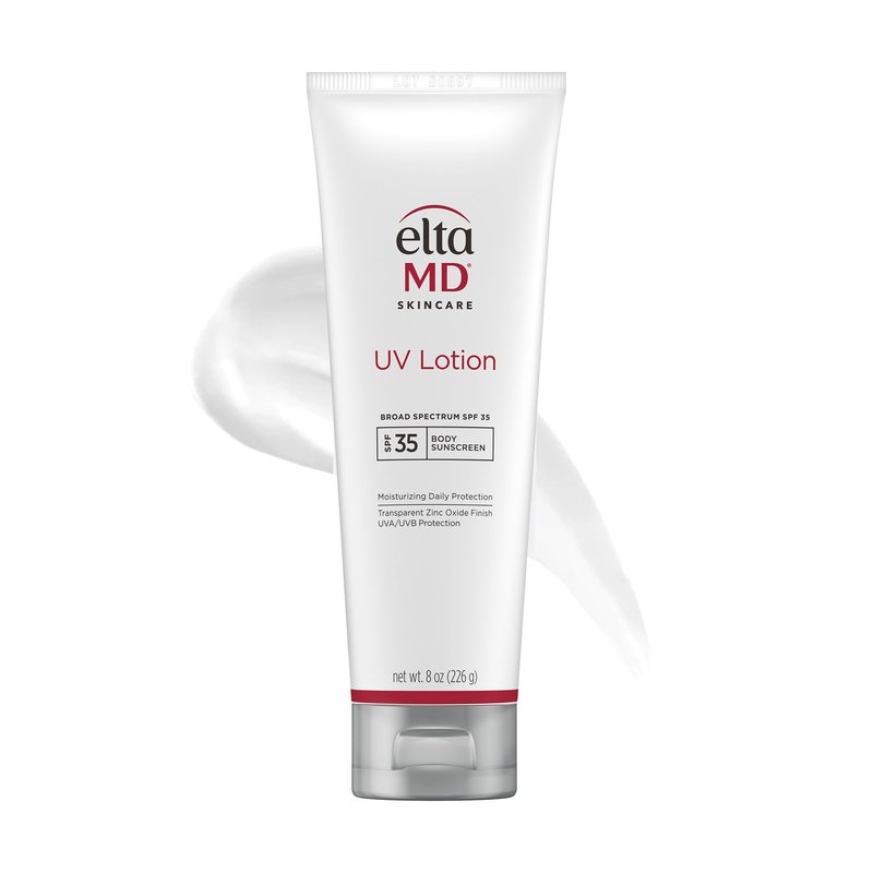 - EltaMD UV Lotion Full Body Sunscreen is a hydrating sunscreen lotion formulated with Hyaluronic Acid which helps hydrate your skin and reduce flakiness for a smoother, softer feel