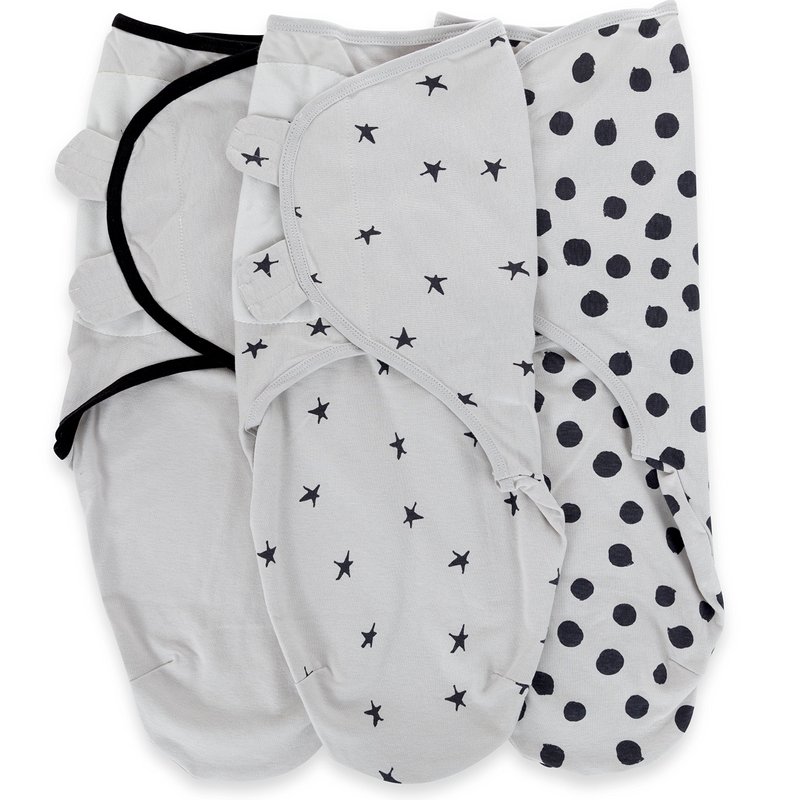 Ely's & Co. Adjustable Swaddle Blanket Infant Baby Wrap Set 3 Pack Grey and Black 0-3 Months