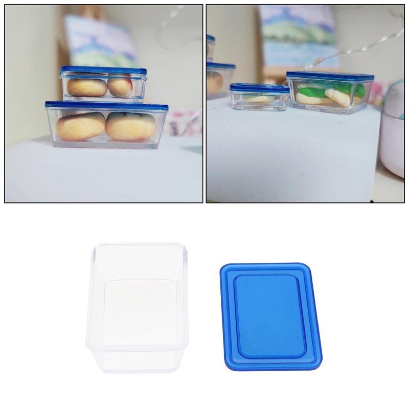 eMagTech 4Pcs Dollhouse Food Storage Box 1/6 1/12 Scale Dollhouse Bento Box Mini Fresh Box Dollhouse Ornament for DIY Making Plastic Blue