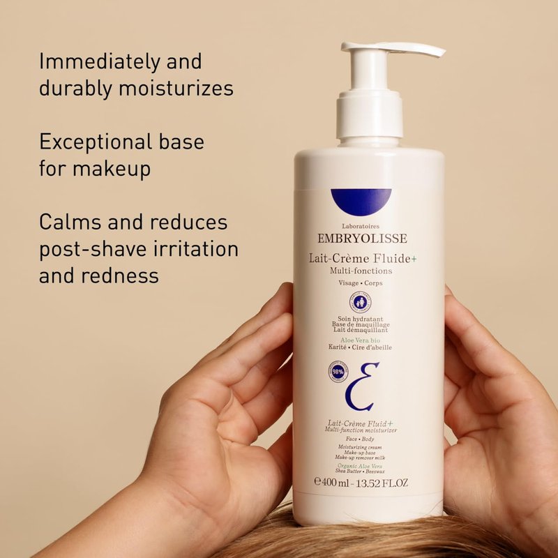 Embryolisse Lait Creme Fluid+ Face & Body Cream. Natural Lightweight Moisturizer for All Skin Types. Hydrating Lotion with Shea Butter & Aloe Vera, 13.52 Fl Oz