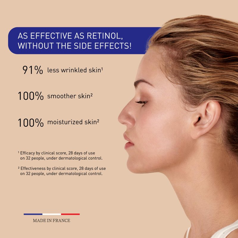 - Gentle Anti-Aging: Plant-based retinol-like active ingredients derived from French clover effectively diminish the appearance of fine lines and wrinkles without irritation