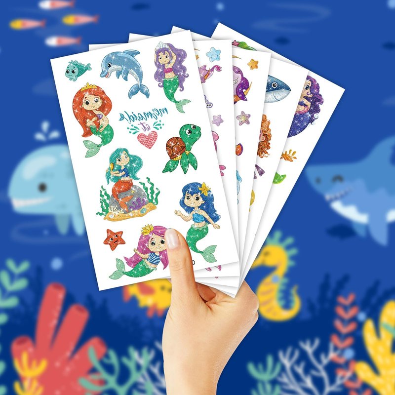 sea animal and mermaid glitter tattoos for kids with 20 sheets