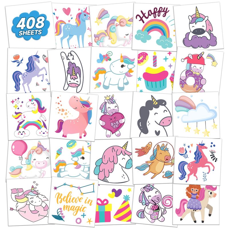 - 【Unique Tattoos Design】You will get 408 pcs of kids tattoos including various styles of rainbows, castles, diamonds, and other fascinating design patterns. All the patterns are not repeated, your child will love discovering new and cute designs.