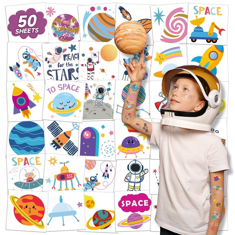 50 Sheets Individually Wrapped Space Kids Tattoos Temporary
