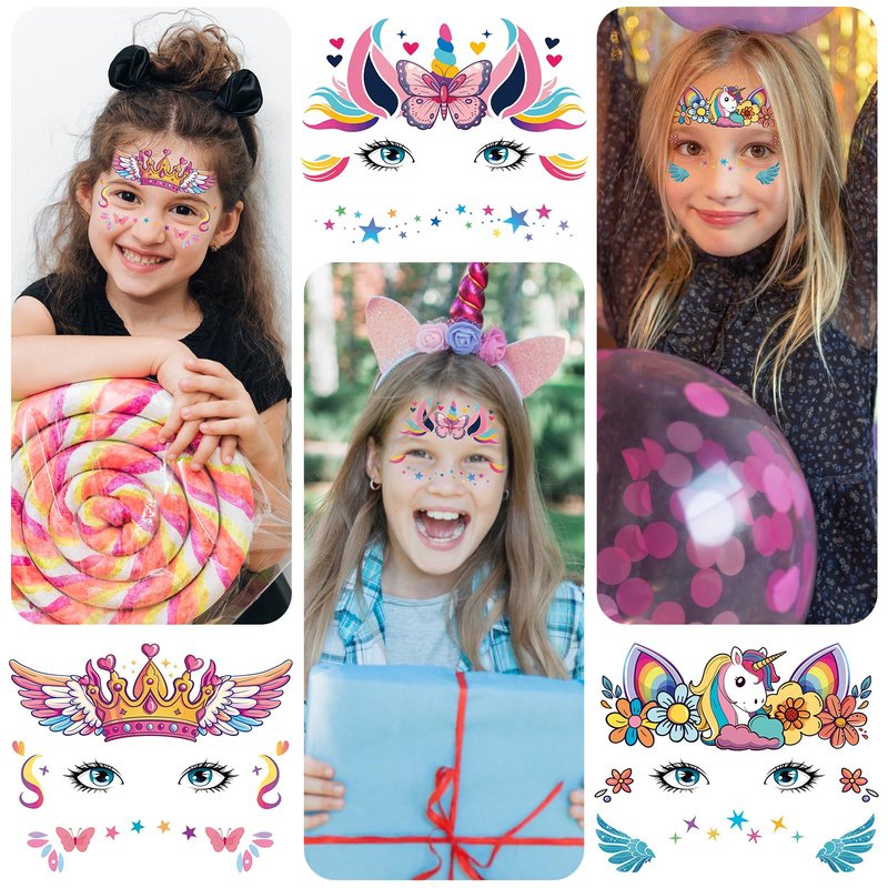- 【Enchanting Designs】Delight your little ones with a set of 15 unique face tattoos for girls, each brimming with magic and fantasy to make their party extra special.