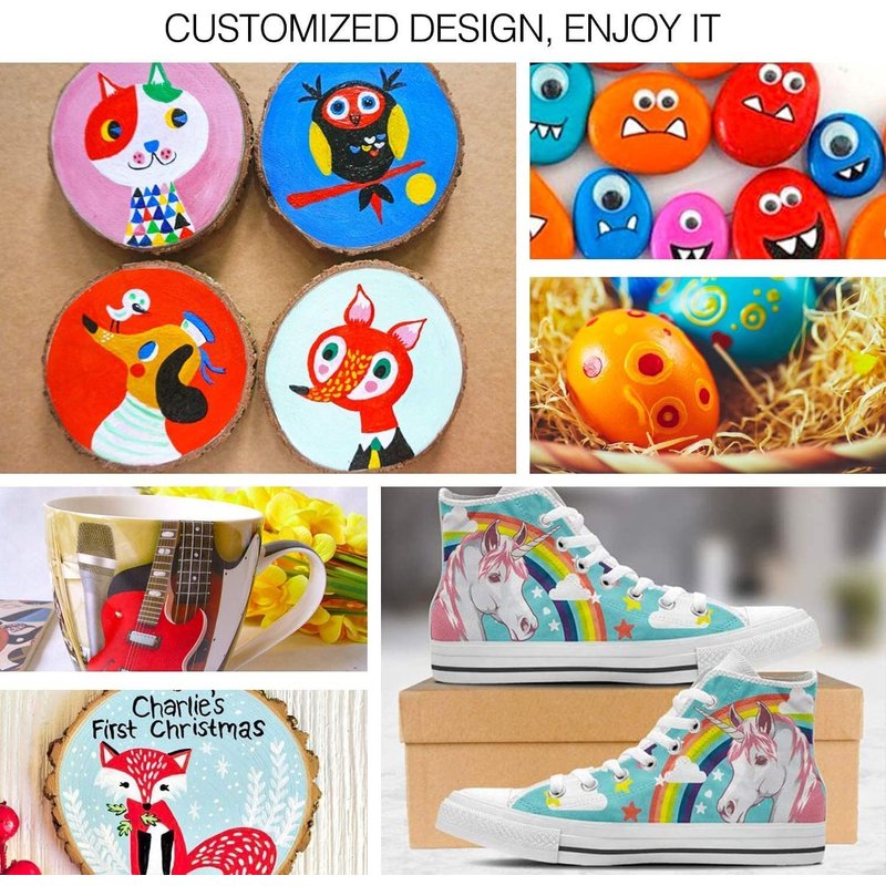 - Muti-Application: DIY projects on a variety of surfaces like porcelain, ceramic, glass, treated wood, leather, canvas, fabric, metal, to plastic. They’re perfect for creating kindness rocks, scrapbooking, or customizing mugs.