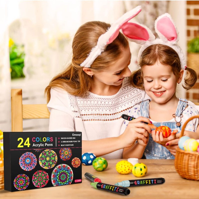 Emooqi Acrylic Paint Pens, Set of 24 Colors Paint Markers Pens for Rocks, Craft, Ceramic, Glass, Wood, Fabric, Canvas -Art Crafting Supplies