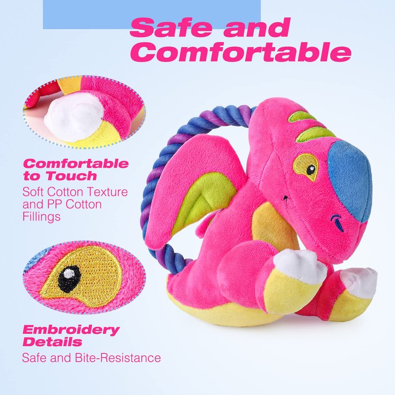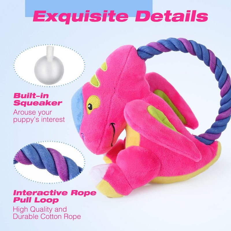 Emorefun Squeaky Dog Toys, Plush Dog Toy, Animals Shape Dog Chew Toy with Rope Loop,Tug-of-war Dog Toy,Stuffed Interactive Dog Toys