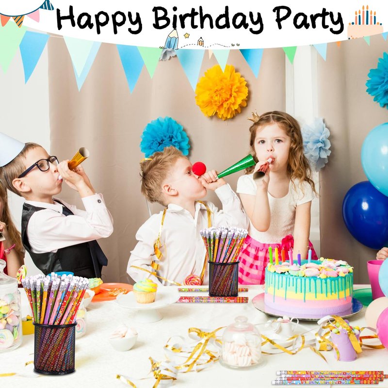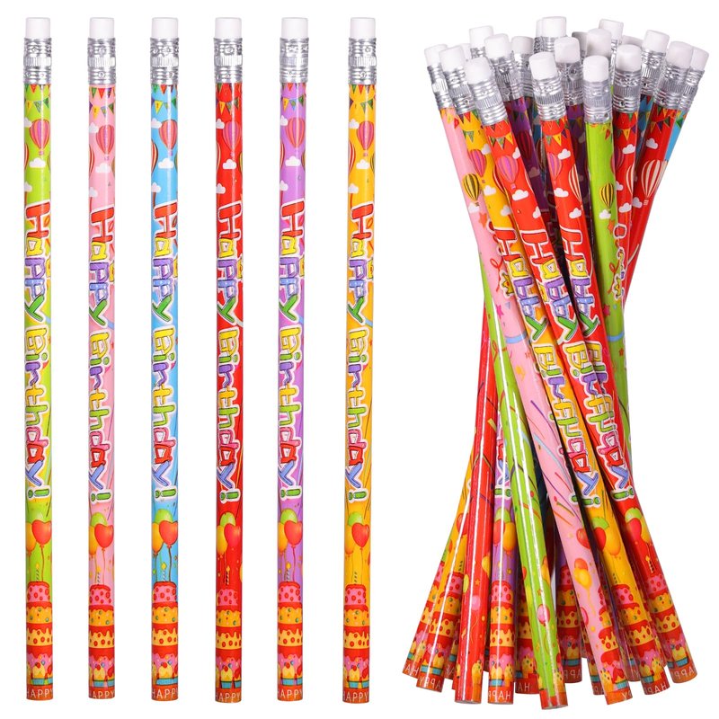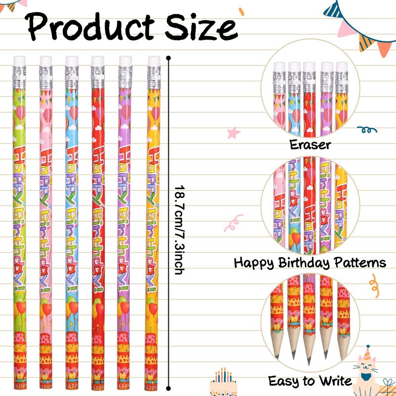 - Happy Birthday Pencils: Our colorful pencil sets have 6 different styles of birthday pencils with eraser, printed with many elements related to birthday, such as the letter pattern Happy Birthday. Cute and colorful pencil will add more fun to your Birthday party.