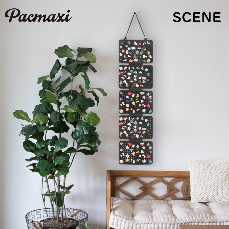- ✔【Pin Collections Organizers-Large Capacity】: 5 loose-leaf brooch pin board pieces suit hangings on the wall, you can mix and match as you like,organize and display your pins, patches, badges, buttons and more on PACMAXI pin banner.