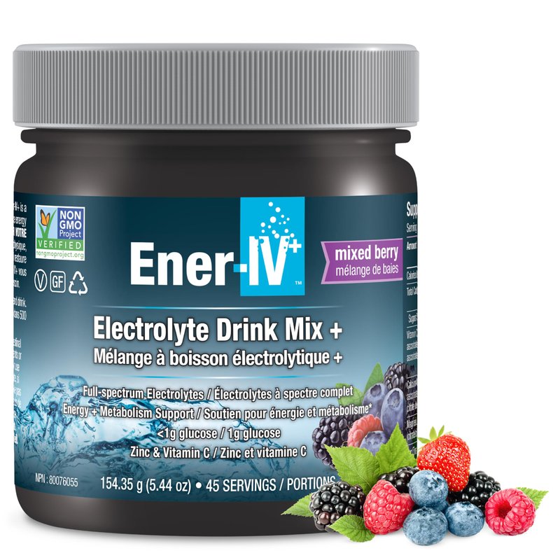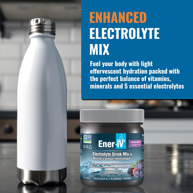 Ener-IV Electrolyte Hydration & Energy Drink Mix Potassium Zinc & Vitamin C Electrolytes Powder - Muscle Recovery & Immunity Sports Drinks for Women & Men, Low Sugar Non-GMO, Mixed Berry - 45 Servings