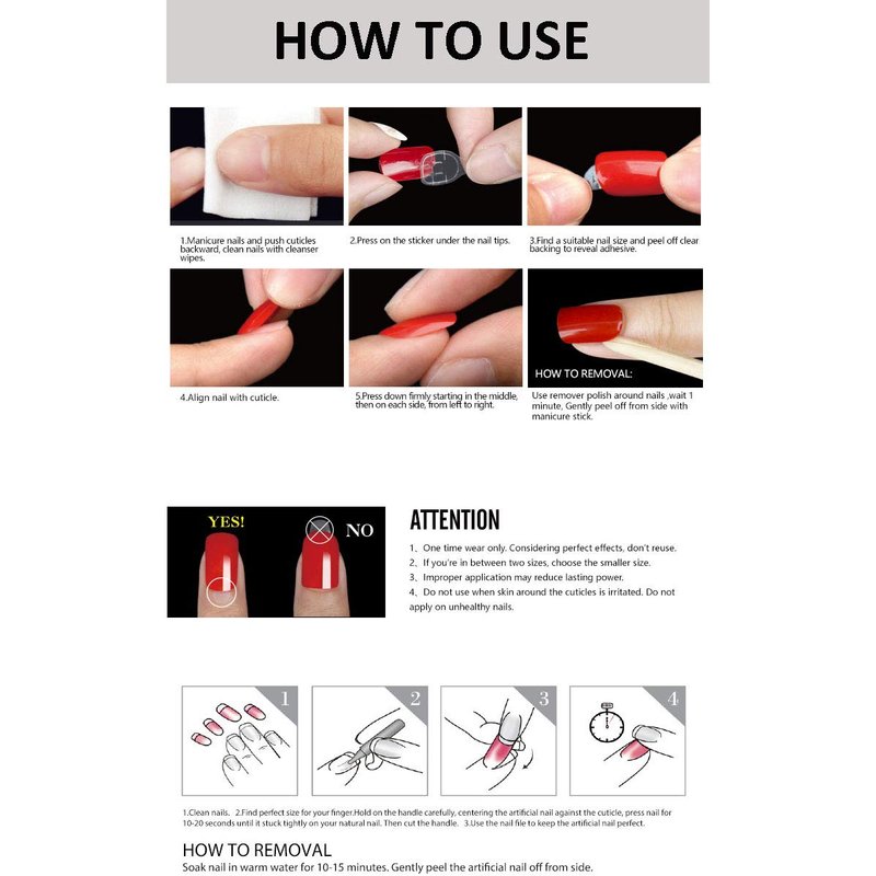 - High Quality ABS Material- The nails are made with high quality ABS material, which is thin and sturdy. What's more, ABS is a kind of healthy and friendly material, providing you a safe and comfortable nail doing experience.