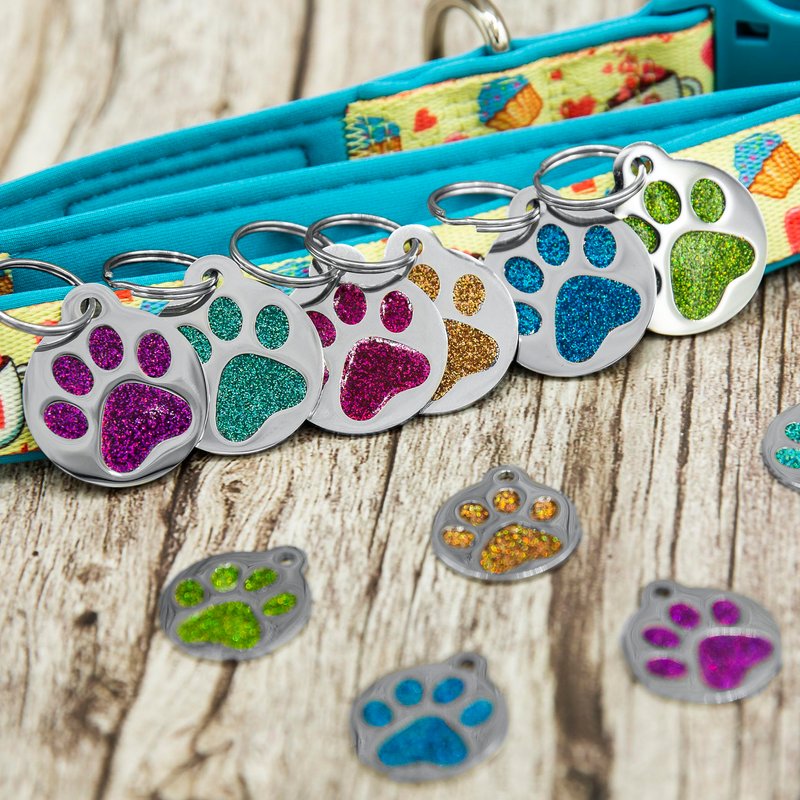 - Our engraved round paw print dog cat tags personalized solid stainless steel have color Enameled in 6 colors: Ocean Blue, Aquamarine, Deep Pink, Magenta, Pale Green, Amber are incredibly durable and long-lasting