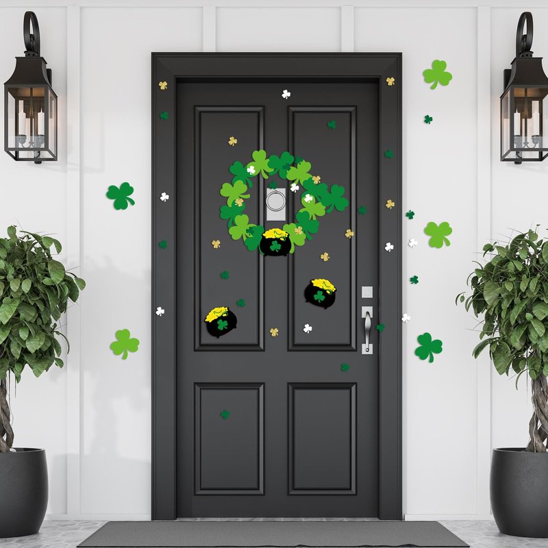 - Size Information: these St. Patrick's Day party gifts were designed with consideration for user convenience; The size of the finished wreath is approximately 10 x 9.9 inches, making it an ideal decoration for doors or walls; In addition, each Shamrock cutout is approximately 2.58 x 2.8 inches, the gold pot is 2.95 x 2.6 inches, and the small decorative sticker is 0.8 x 0.8 inch in size, which is suitable and can bring a balanced and beautiful appearance to your wreath