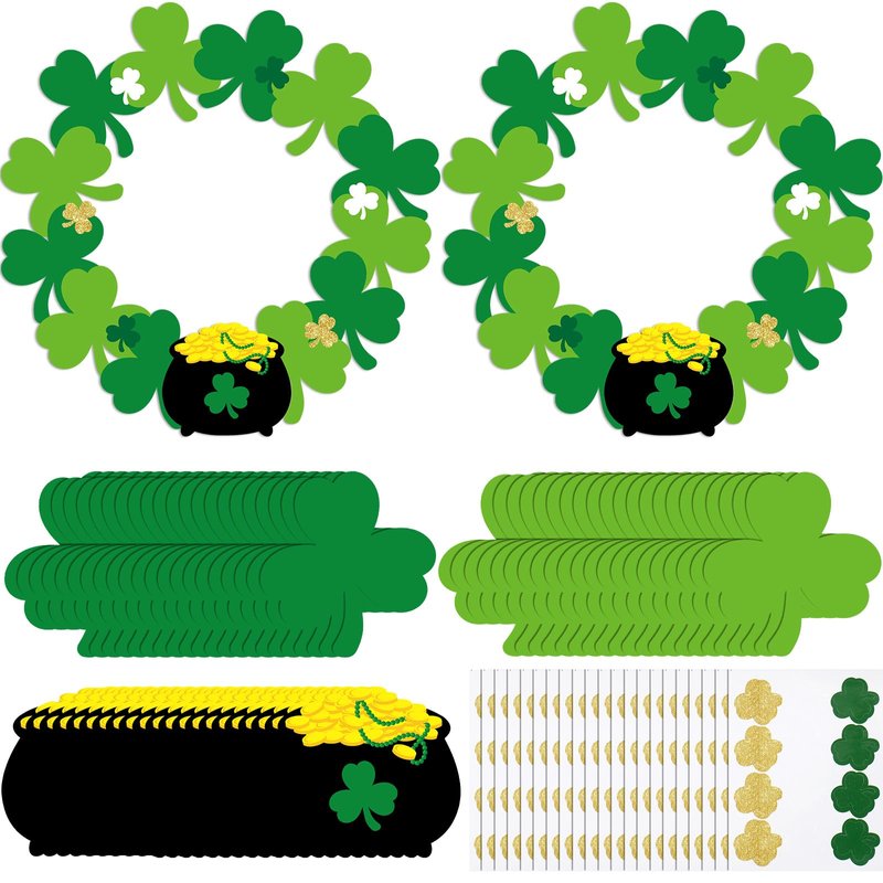 - Abundant Quantity and Classic Colors: this St. Patrick's Day wreath handicraft set comes with 24 sets; There are 2 styles of Shamrock, each with 144 pieces; There are 24 gold pots for 24 wreaths, 144 decorative shamrock stickers were divided into 12 sheets ; Also included are 500 glue points for easy use; The bright green color of the wreath and clover reflects the authentic Irish tradition, making each piece an unforgettable piece of art