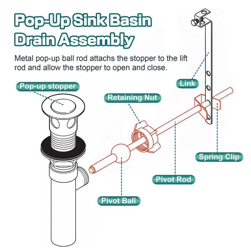 - Replacement Pop up Ball Rod: metal pop up ball rod attaches the stopper to the lift rod and allow the stopper to open and close