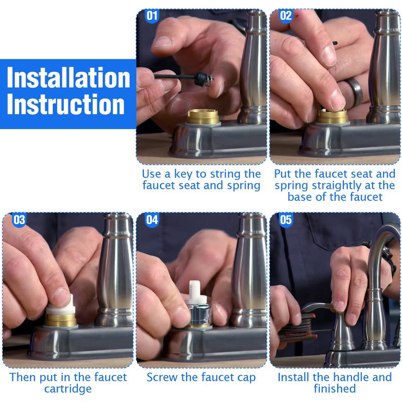 - Easy Installation: once replacing the repair kit, you need to take out the broken one, put seat and spring first in the faucet and the put the cartridge on it, finally reinstall the handle and finished