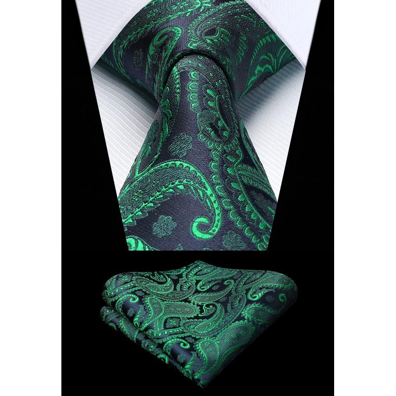 Enlision Green Paisley Tie Boys Necktie Pocket Square Set Forest Hunter Children Tie for Boy Classic Formal Navy Neck Strap Tie for Kids Party School