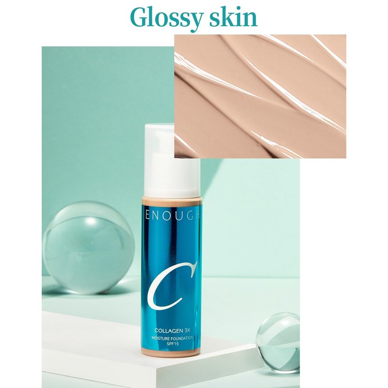 This NEW lightweight, hydrating foundation from ENOUGH COLLAGEN provides full coverage with broad spectrum SPF 15 protection. Infused with collagen and retinol, the unique formula nourishes skin as it evens tone and conceals imperfections. With a natural glossy skin finish, it minimizes the appearance of pores and fine lines for a soft-focused effect. The pump dispenser delivers the right amount of product each use while preventing waste. Wear it daily to shield skin from environmental damage and boost collagen production for a youthful, radiant complexion. Suitable for all skin types, it glides on smoothly and blends seamlessly into the skin without settling into fine lines or accentuating dry patches. Designed with Korean skincare technology, the ENOUGH Collagen 3X Moisture Foundation not only enhances your complexion but also improves the overall health of your skin. Whether you're looking for flawless coverage, sun protection, or a hydrating boost, this foundation delivers it all in one easy step.
