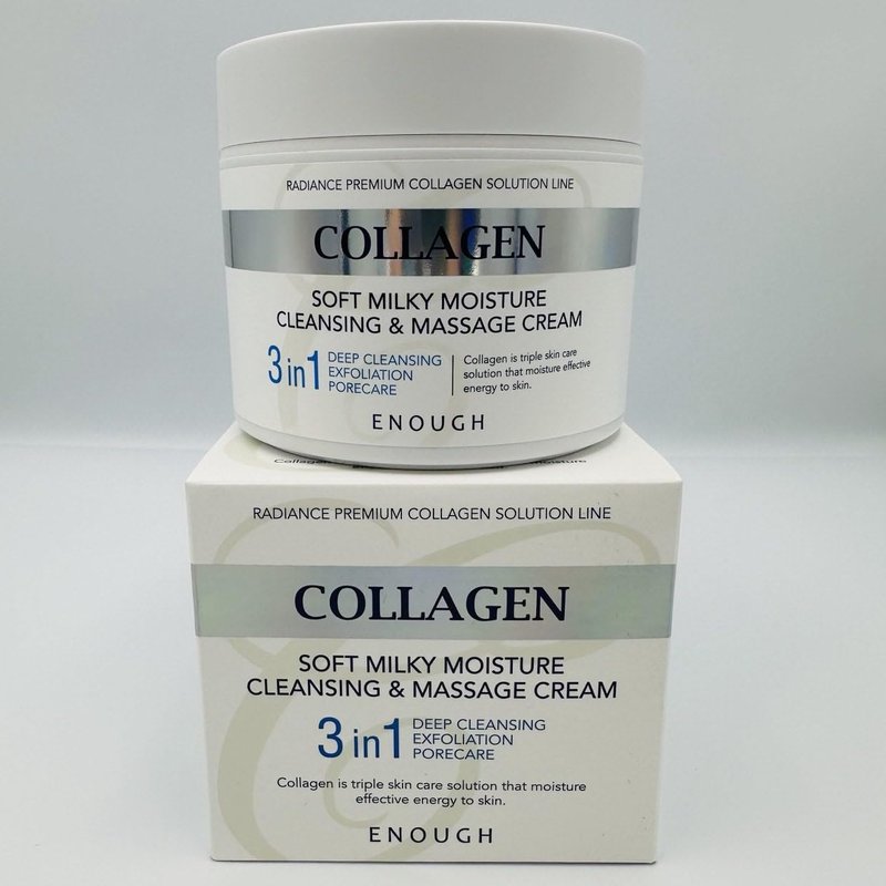 Transform your skincare routine with Enough Collagen Soft Milky Moisture Cleansing & Massage Cream. This unique 3-in-1 formula not only deeply cleanses and exfoliates but also provides intensive pore care. Infused with hydrolyzed collagen, it supports skin elasticity while moisturizing, leaving your skin feeling soft and rejuvenated. Ideal for daily use, it preps your skin perfectly for makeup application or end-of-day cleansing. Elevate your skincare routine with the luxurious ENOUGH Collagen Soft Milky Moisture Cleansing & Massage Cream. This innovative Korean skincare product combines the benefits of a deep cleansing face wash with the nourishing properties of a hydrating massage cream. Enriched with collagen, this soft, milky formula gently removes makeup, dirt, and impurities while providing intense hydration and nourishment to your skin. Perfect for all skin types, including sensitive and dry skin, this cream ensures your skin stays soft, supple, and moisturized after every use. The lightweight texture effortlessly glides over the skin, delivering a soothing and relaxing massage that helps to improve circulation and revitalize your complexion. Whether you're looking to cleanse, hydrate, or indulge in a calming massage, the ENOUGH Collagen Soft Milky Moisture Cleansing & Massage Cream offers a versatile and effective solution. Add this Korean skincare essential to your daily routine to achieve clean, refreshed, and radiant skin.