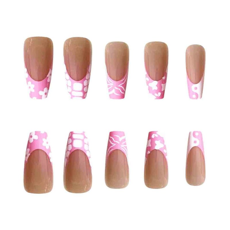Enppode French Tip Press on Nails Long Fake Nail Pink Stick on Nails Coffin Nails for Women 24 PCS/Set