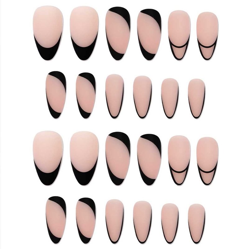 Enppode French Tip Press on Nails Medium Stick on Nails Almond Black Acrylic Nails Nude Matte Nails for Women