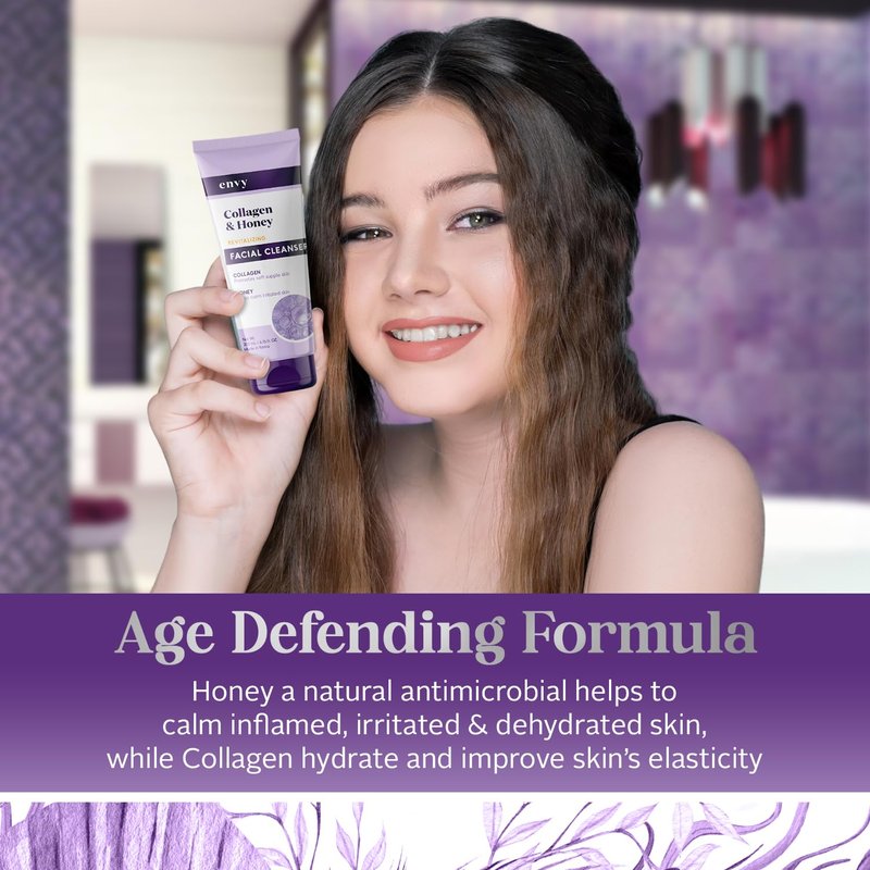 - NATURAL INGREDIENTS FOR DEEPLY CLEANSED SKIN: Envy Facial Cleanser combines collagen to boost skin elasticity and honey to calm and hydrate. Enjoy a more youthful appearance with every use—no parabens, phthalates, or GMOs.