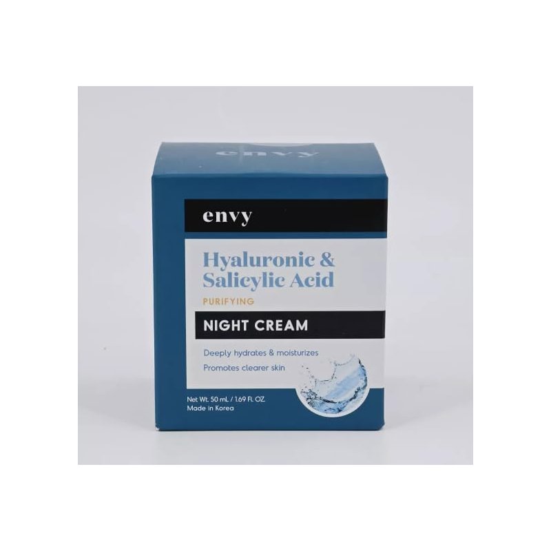 ENVY Hyaluronic & Salicylic Acid, Purifying Night Cream - Deeply Hydrates & Moisturizes - Promotes Clearer Skin - Cruelty Free Korean Skin Care For All Skin Types - 1.69 Fl. oz