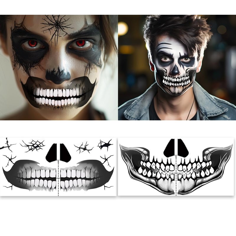 Perfect for Any Occasion: These halloween temporary face tattoos are more than just a costume accessory—they’re a great addition to any Halloween event, from trick-or-treating to themed parties and cosplay. Use them as halloween prank makeup temporary tattoos for an unforgettable costume that will wow everyone!