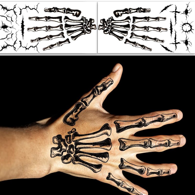 - Unique Designs: Our Halloween face tattoos, including skeleton face tattoos and Skull Palm Tattoo, feature a variety of creative and stylish designs that are perfect for Halloween costumes, women's Halloween costumes, and skull makeup looks.