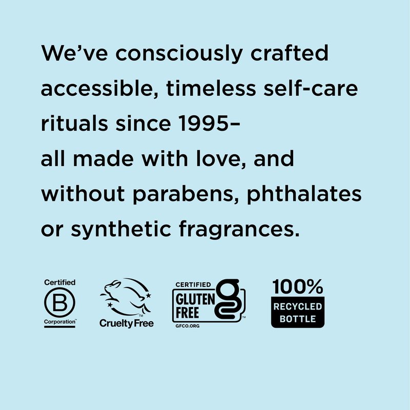 - Free of gluten, synthetic fragrance, parabens, and phthalates. Cruelty free. B Corp Certified.