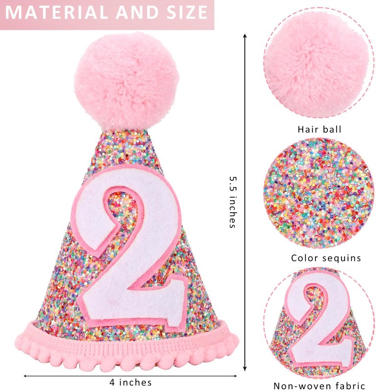 - Premium Material: Our birthday cone hat is made of high-quality felt, elastic bands, and sequin fabric, with a large pink pomfret ball at the top connected to the cone hat, all handmade. The elastic band is comfortable to make it fit all baby's head perfectly without making your baby feel uncomfortable.