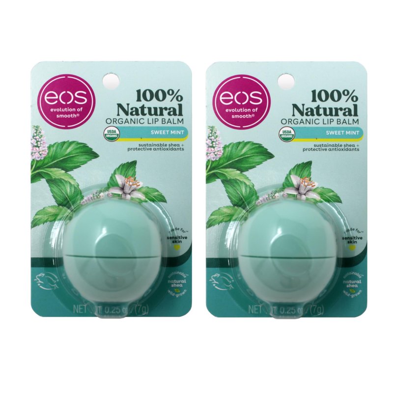 eos Sweet Mint Organic Lip Balm - Natural Shea, Gluten-Free, for Sensitive Skin 0.25 oz (Pack of 2)