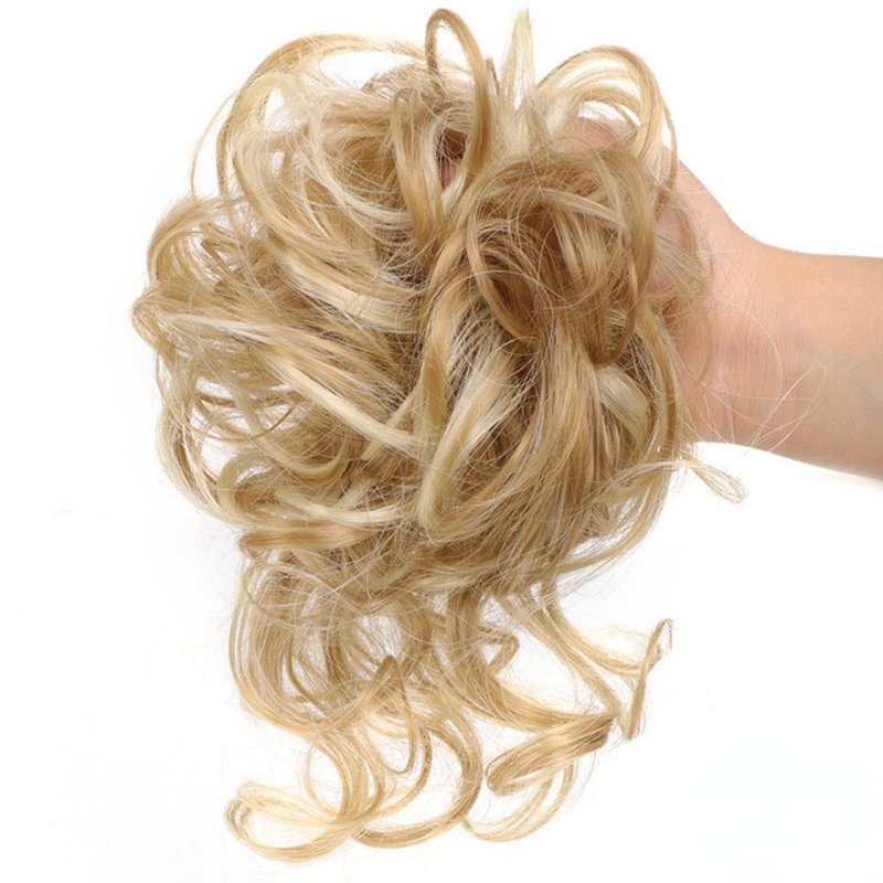 EPERDE Tousled Updo Bun Hair Piece Ponytail Wrap Scrunchies with Elastic Rubber Hair Band Synthetic Short Wavy Curly Hair Extensions for Women Girls with Tendrils Messy Ball Head Wig (5PCS, Blonde)