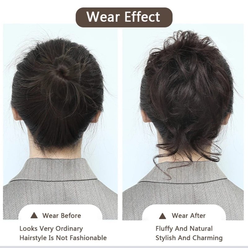 - Easy to Wear - Easy Stretch Updo Hair Chignons brings you an elegant decent look in just a second. By simply tying your hair into a ponytail or bun and then wrap hair scrunchies around your hair to make a bun, a flirty and casual chic hairstyle is done.