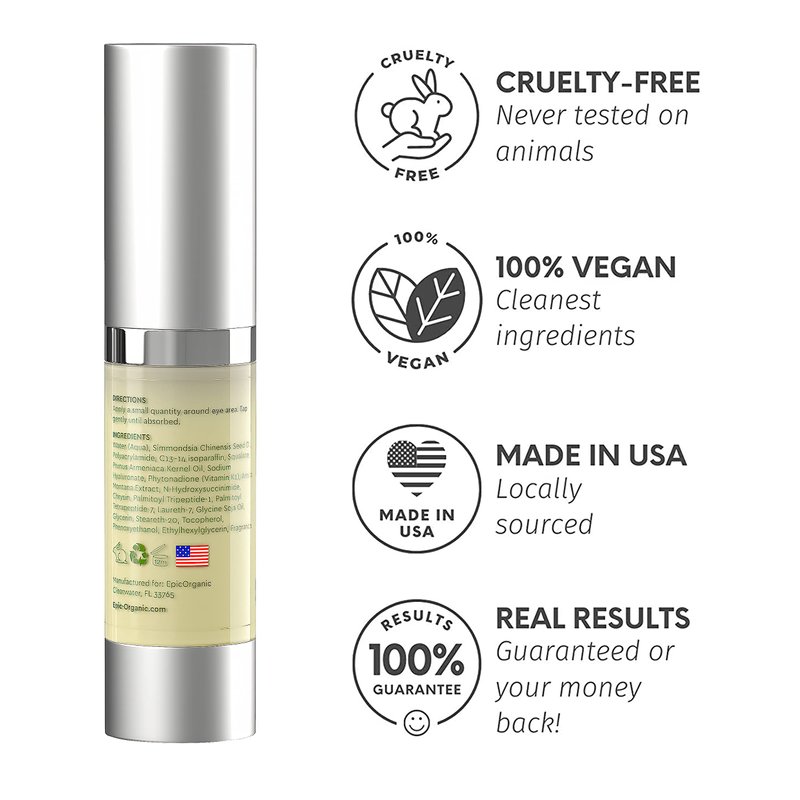 - ♡ PROVEN RESULTS - This natural Epic Organic Eye Cream with Arnica oils was designed for dramatic results. But yet gentle enough for daily use by men and women. It visibly brightens & depuffs around eyes areas in 4 weeks & reduces appearance of fine lines by 50% in just 12 weeks*