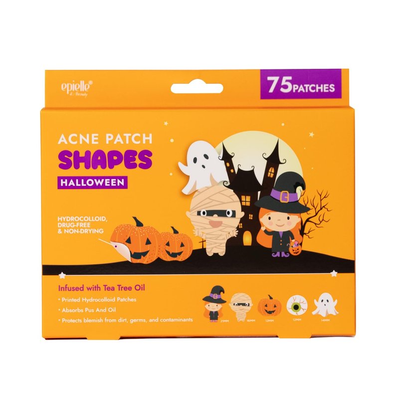 - Festive Acne Patches: This pack contains 75 hydrocolloid acne patches in fun Halloween shapes like pumpkins, ghosts, witches, eyeballs, and mummies.