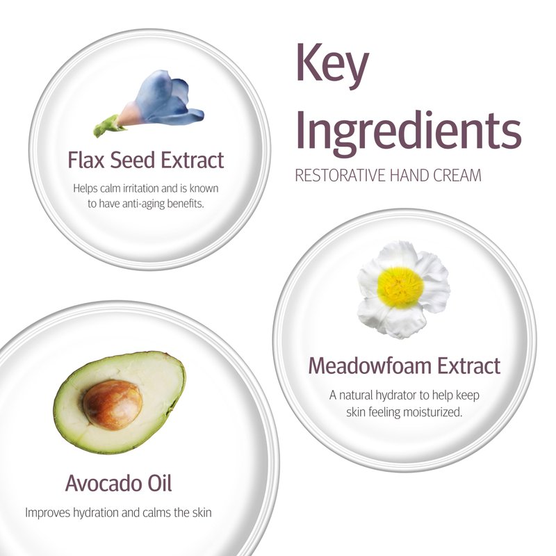 - Usage: The Restorative Hand Cream is a quick-absorbing, non-greasy hand cream formula that quickly hydrates hands. It helps reverse the signs of skin aging.