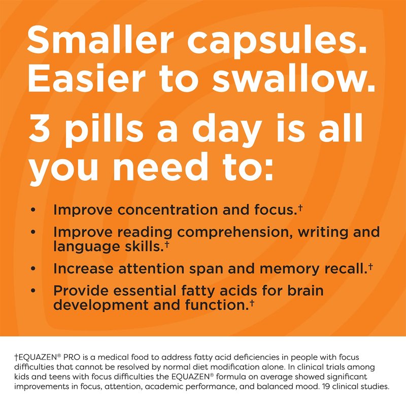 - Clinically Proven Omegas for Kids + Teens - Backed by 17 years of ongoing research and 20 clinical studies including 6 clinical trials with children experiencing attention concerns. EQUAZEN PRO supports learning, attention and focus, academic performance, and balanced mood in children with focus difficulties.*