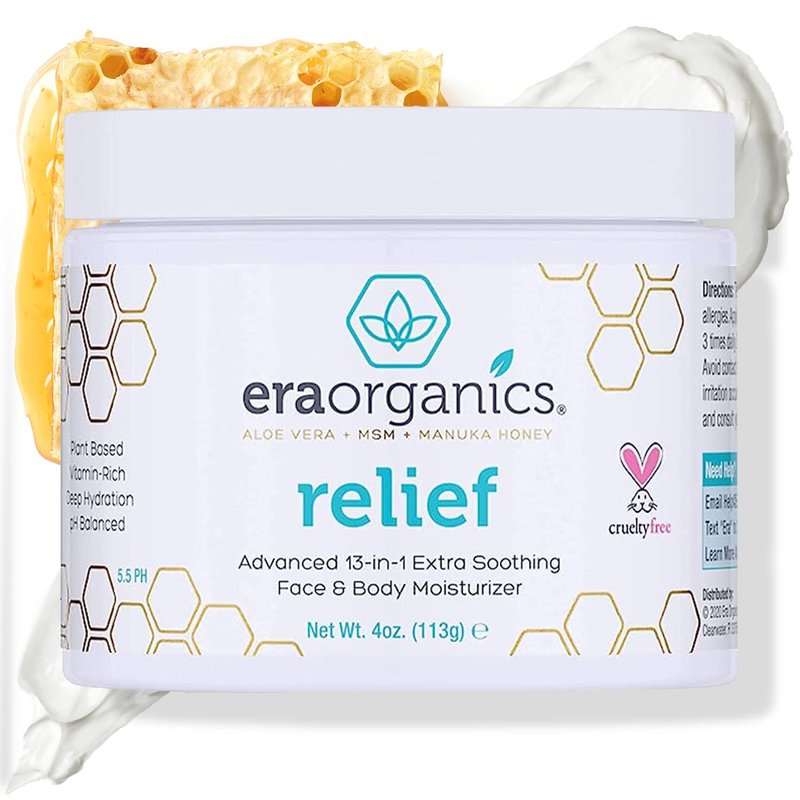 Era Organics Eczema, Psoriasis & Dermatitis Moisturizer Cream - Advanced 13-in-1 Non-Greasy Calming Moisturizer with Aloe Vera, Manuka Honey & More. Face & Body Lotion for Dry Itchy Skin 4oz