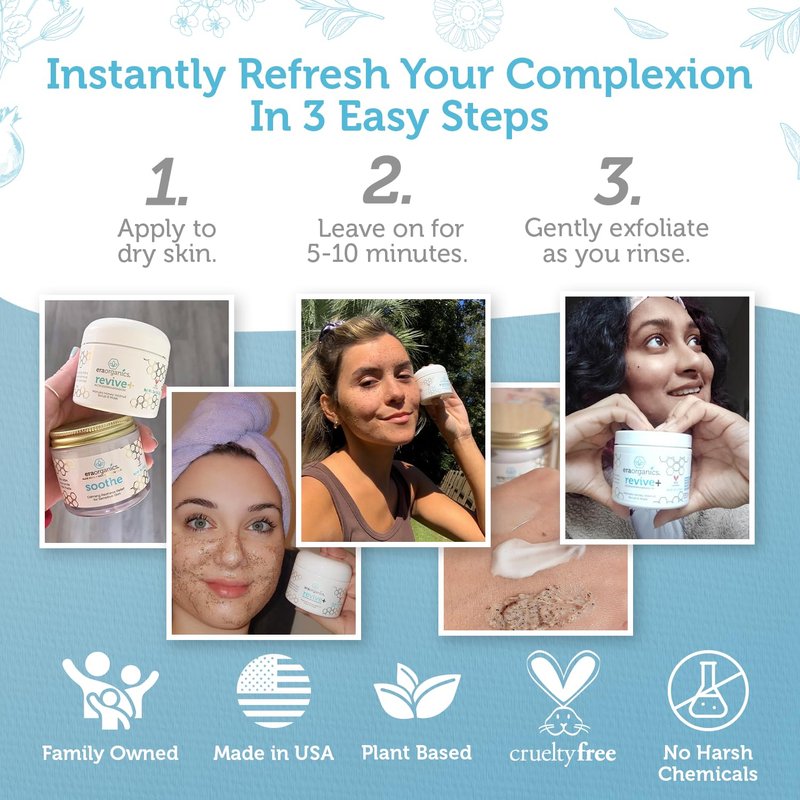 A treatment you can get at home. Our organics microdermabrasion exfoliating scrub and facial mask will help give you a glowing, beautiful looking complexion at a fraction of the price. We produced the highest quality botanical sugar scrub you'll find anywhere. ingredients include Aloe Vera, helps moisturizes the skin and boosts rejuvenation; Manuka honey, balances the skin's pH, detoxifies, stimulates healing and boosts the skin's immune system; Walnut, dislodges dirt and dead skin cells; Sugar Cane helps the effectiveness of the walnut; Vitamin C potent antioxidant that greatly helps prevent premature aging. Cheaper treatments use primarily harsh shells which rip and damage skin, our facial exfoliator is the most gentle and effective way to help remove dead skin, restore and recover for the most radiant look you'll ever get. Helps minimize and cleanse pores, reduce fine lines and wrinkles on face, hands and body. Can reduce blemishes and help prevent breakouts while also calming embarrassing acne scars without the need for dangerous chemical peels. This exfoliating age defying mask will leave your skin smoother looking, while hydrating to restore and replenish your skin’s youthful look. If you're looking for the best skin treatment, here it is. Get yours.