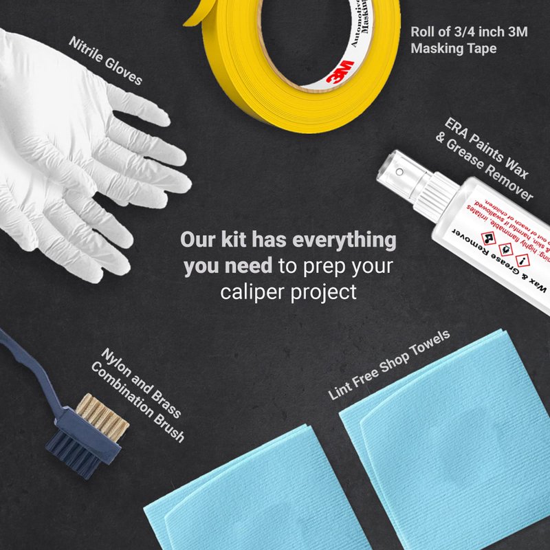 Our prep kits include everything needed to paint your calipers including quality 3M masking tape - just need to add warm water and detergent!
