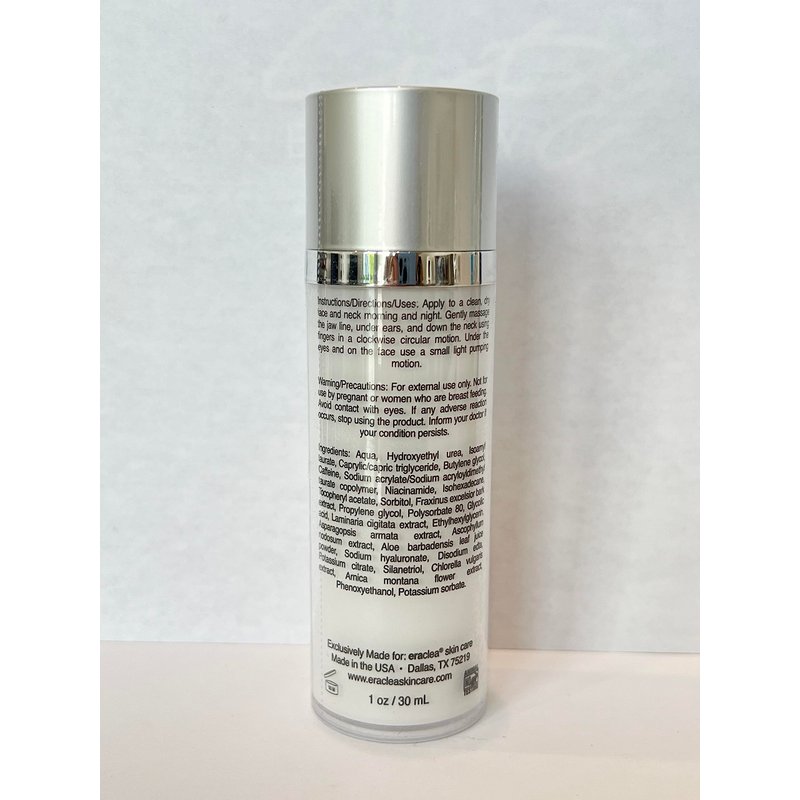 eraclea soothe and calm facial sculpting lotion is formulated with the healing properties of mineral rich seaweed, herbal extracts moisturizers, and anti-oxidants. Used with gentle massage to encourage the natural circulation on the face and neck, it promotes health in the lymphatic as well as the circulatory system and aids in relaxation and well-being, leaving the face feeling less puffy. This firming face cream relieve puffiness around eyes, improves facial skin tone while it deeply nourishes and hydrates and relieves swelling from excess fluid. It contains HylaFusion, a unique hyaluronic acid complex provides unusually long-lasting hydration and delivers key ingredients to the skin's deeper layers, thus increasing their effectiveness and benefits. It also contains niacinamide which stimulates lymphatic microcirculation while helping to reduce the appearance of puffiness and dark circles under and around the eyes. The unique blend of green amino acids, the essential building blocks of proteins, is helpful for smoothing the skin's surface as well as Arnica Montana flower extract to improve the appearance of dry or damaged skin by reducing flaking and restoring suppleness and to reduce facial swelling. Directions: Apply to a clean dry face and neck morning and night. Gently massage the jaw line, under ears, and down the neck using fingers in a clockwise circular motion. Under the eye and on the face use a small light pumping motion. For external use only. Not for use by pregnant or breast feeding women.